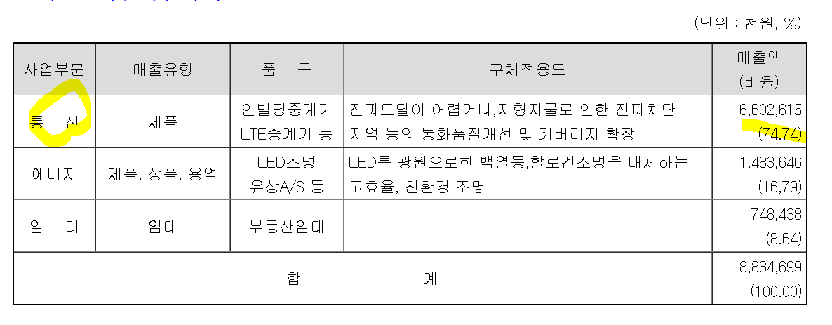ㅡ에프알텍의 매출구성으로 시작하자. 통신과, LED조명이라.