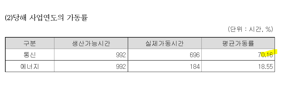 /가동률 역시 통신위주로 진행되고 있음.