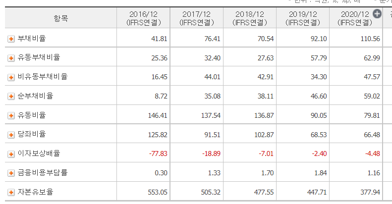 ㅡ 자본유보율 역시 하락추세이며, 지속적인 영업손실로 인한 수치이다.
