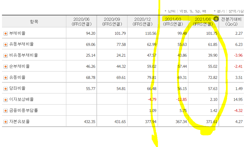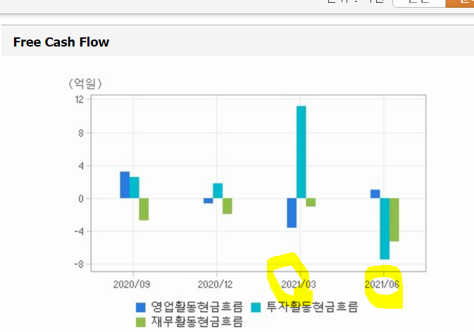 /21년2분기.+--/영업 번돈 ㅡ>자산취득, 부채상환의 모습을 보임*.