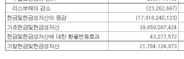 /재무활동의 경우에는 단기차입금의 상환으로 빠져나감 것으로 보인다.