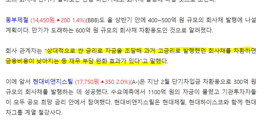 /2) 회사채 발행했으나, 이전 사채보다 금리 개선되었음.
