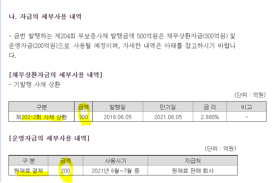 ㅡ재무활동 사용내역을 보면, 이전 사채 상환하고 남은돈으로 원재료 샀다는 건데??