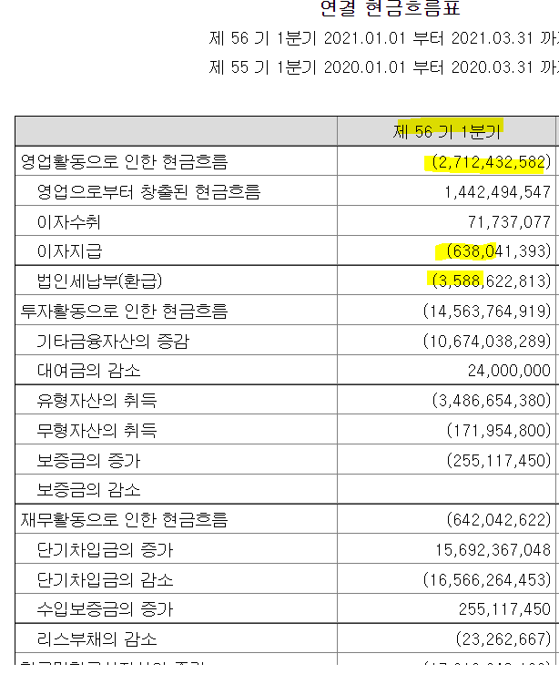 ㅡ1Q21 현금흐름부터 확인해 보자.