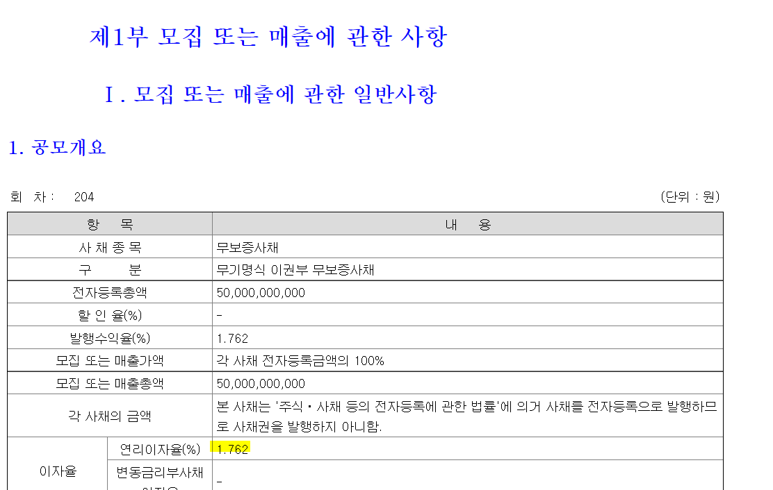 /202-2회차 상환대상 사채의 경우 연리이자율2.88% 인데, 이번에 발행한 사채는 1.76%로 조금 납득이 간다.