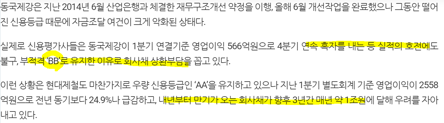 ㅡ철강회사 투자시, 현금성자산과, 사채물량을 비교하고, 만기가 언제인지 확인하는 것이 중요한 것으로 보이는데,