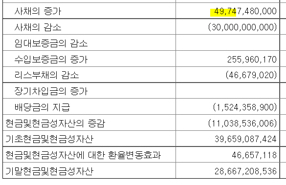 ㅡ재무활동 사용내역을 보면, 이전 사채 상환하고 남은돈으로 원재료 샀다는 건데??