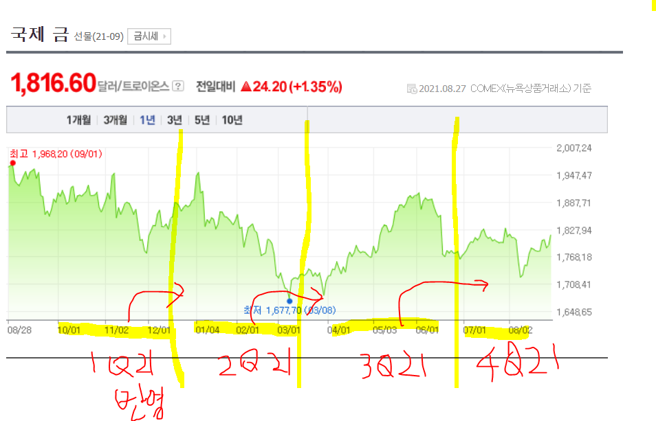 /전분기 금시세가 다음분기 매출에 연관되어 있는데, 쌀때 사서 재고를 비축해 놓는 식으로 보인다.
