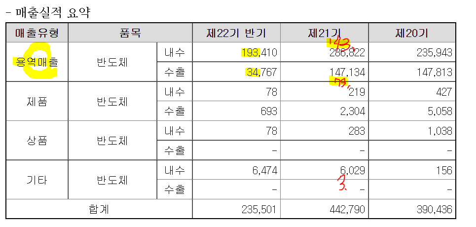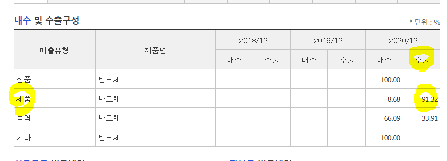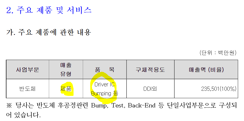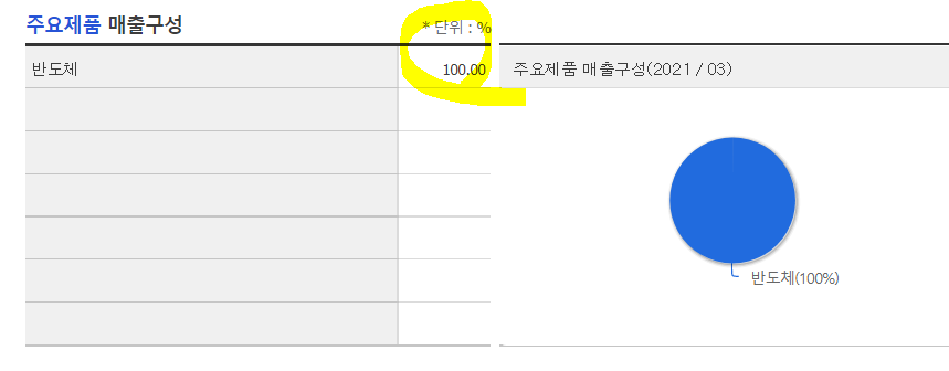 /후공정 업체로 제품매출은 상반기21 기준 0.3%대이다.