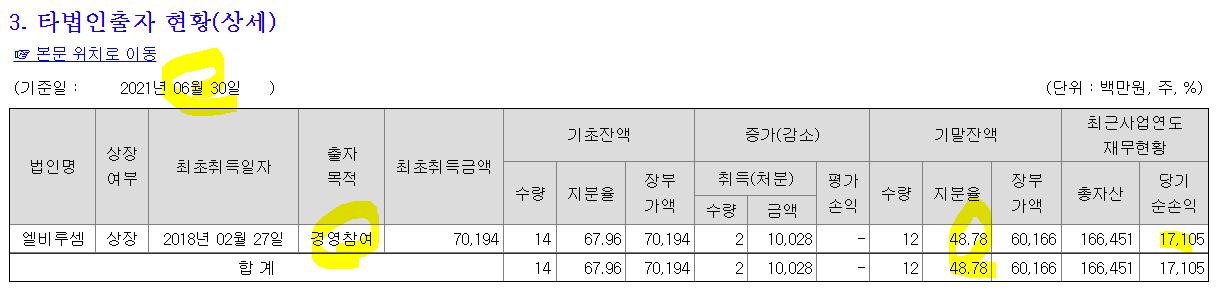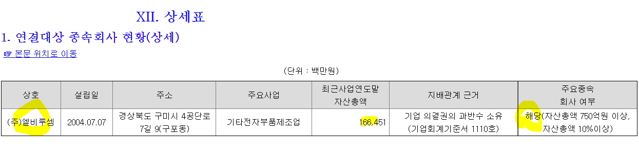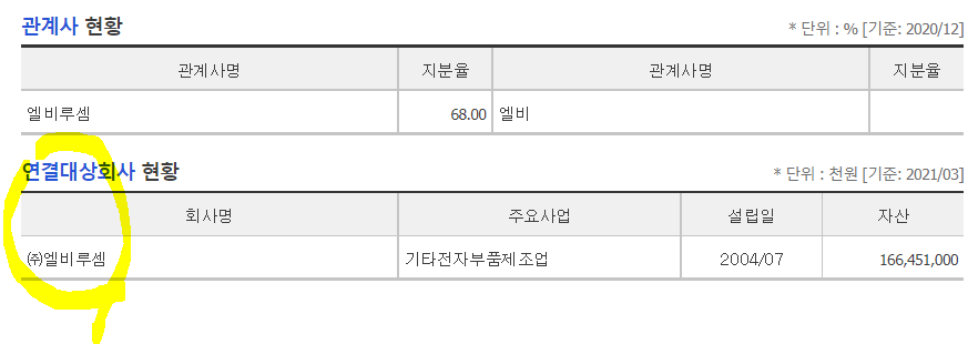 /엘비루셈 자산총액 1664억/을 종속기업으로 연결중이며,