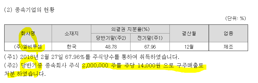/당반기 중 엘비루셈의 주식 200만주를 처분하였는데,