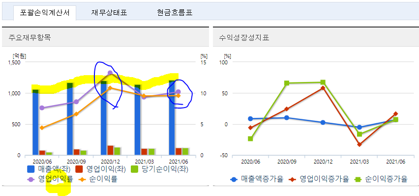 ㅡ매출액 연도별 상승추세 보이나, 영익, 순이익율 19년대비 꺾였으며, 분기별로 봐도 4Q20 대비 2Q21 영익율 낮은데, 매출과 영업이익 등 변화를 살펴보자 *