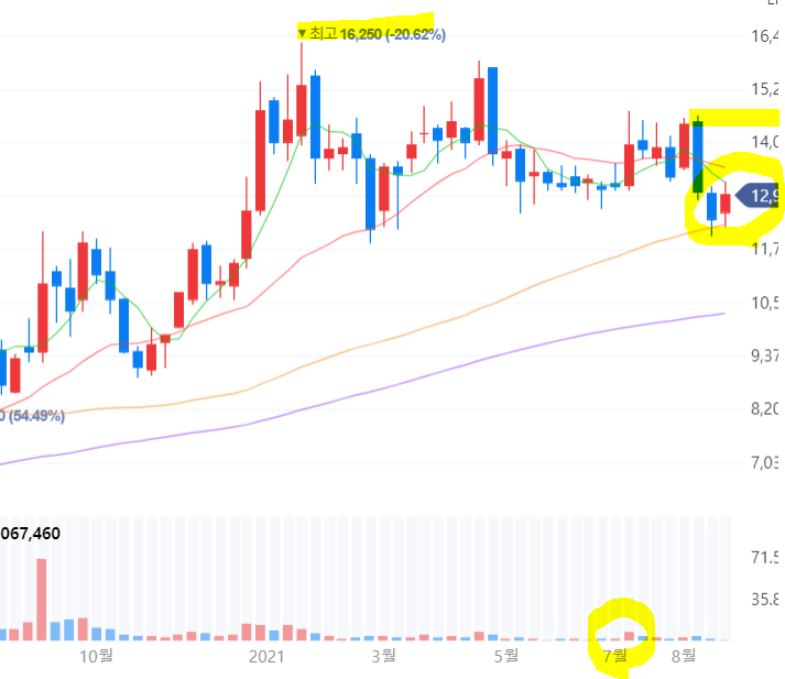 /시장에서도 7월 DDI수요증가로 인한 호실적 예상되어 주가 상승되어 14천원 후반대까지 오르다가 조정을 받는 중임@