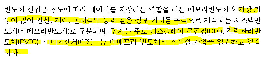 /비메모리 후공정 사업을 영위 중.