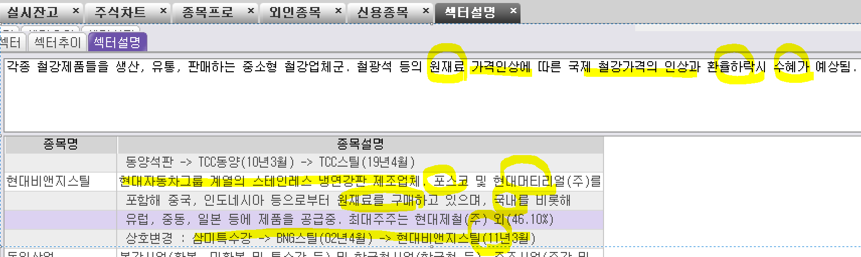 ㅡ섹터설명 및 종목에 대한 설명을 보면, 원재료 가격 인상에 수혜를받는다는 특징이 있는데,