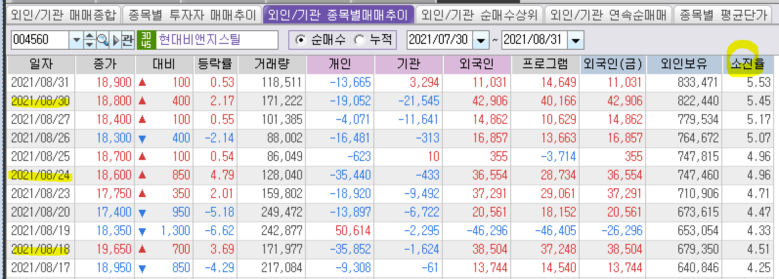 /8.18./종가 19,650원 으로 전일 대비 3.69% 상승. 외국인 소진율 4.51%
