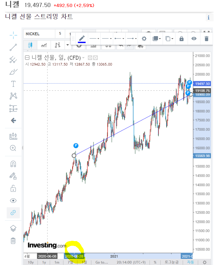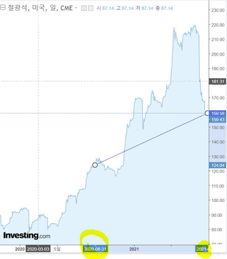 ㅡ 자 그러면, 철광석 과, 니켈의 가격상승 그래프를 보자.