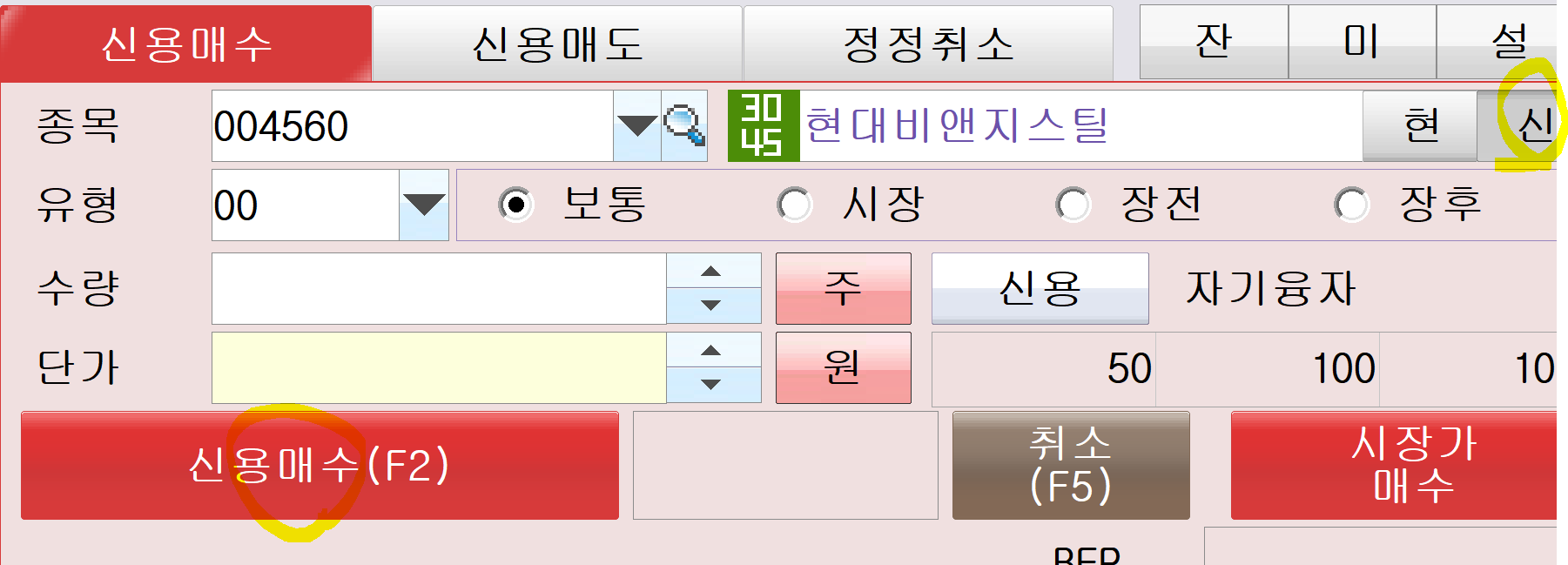/신규 : 당일 신용(빛투)을 써서 매수한 물량. 당일에 꾼거.